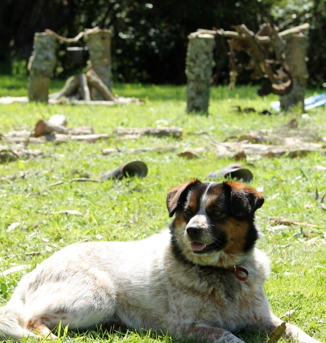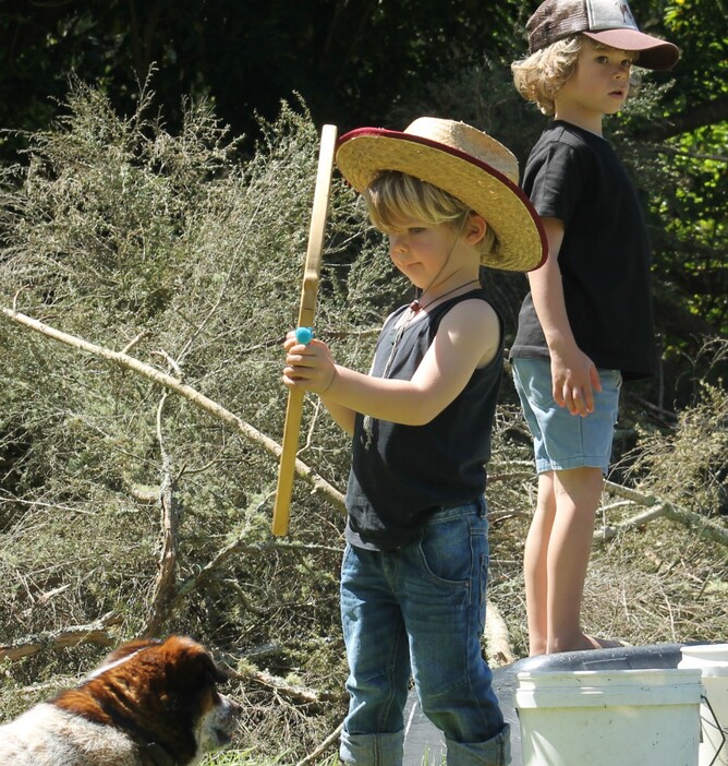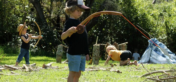On the weekend we had to cut a tree down on our property. The abundance of sticks and logs really sparked our kids' imaginations and they made a fort and set up an 'American Indian campsite'. All day long I would hear shrieks of surprise and delight from the kids as JR snuck out of his workshop and ambushed them.